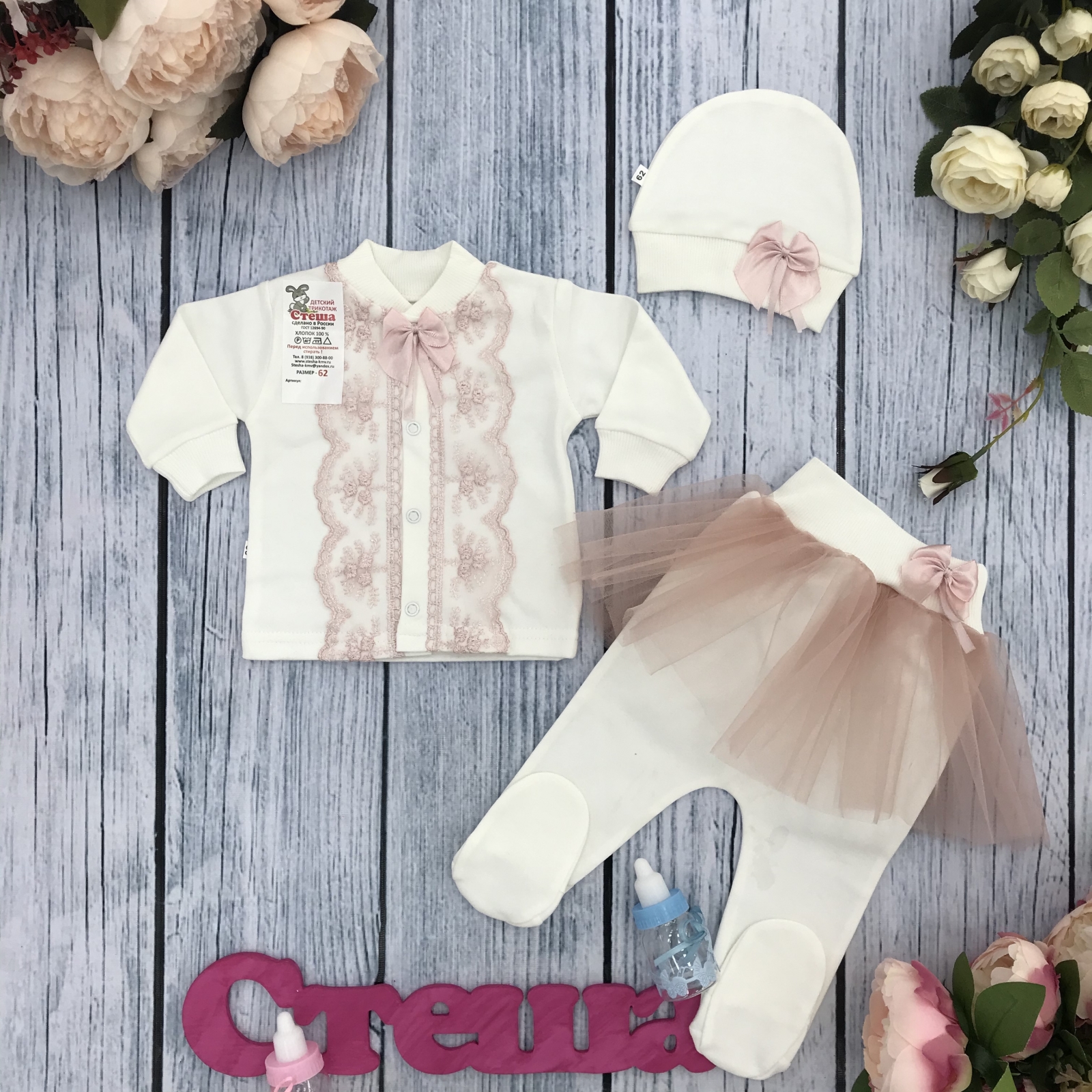 217. Комплект 3 предмета, хлопок 100% интерлок, пудра