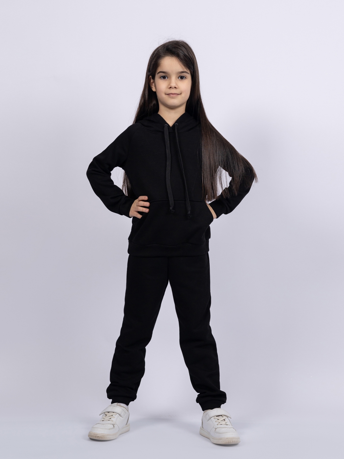Купить оптом 311-Ч. Свитшот с капюшоном + Штаны, хлопок 65%, 35% ПЭ, 3-х нитка ( без начеса) черный 80,86,92 в Кызыле