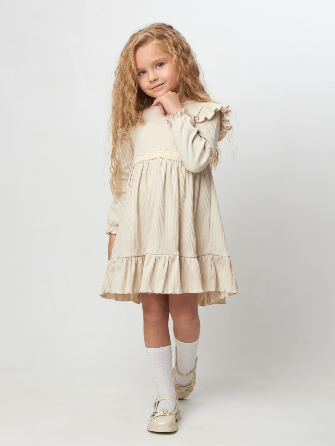 Теги: Платья детские из мулина оптом. 332. Платье детское из лапши, хлопок 100%, бежевое, р. 98,104,110,116 цена,отзывы официальный сайт "Стеша Кызыл"